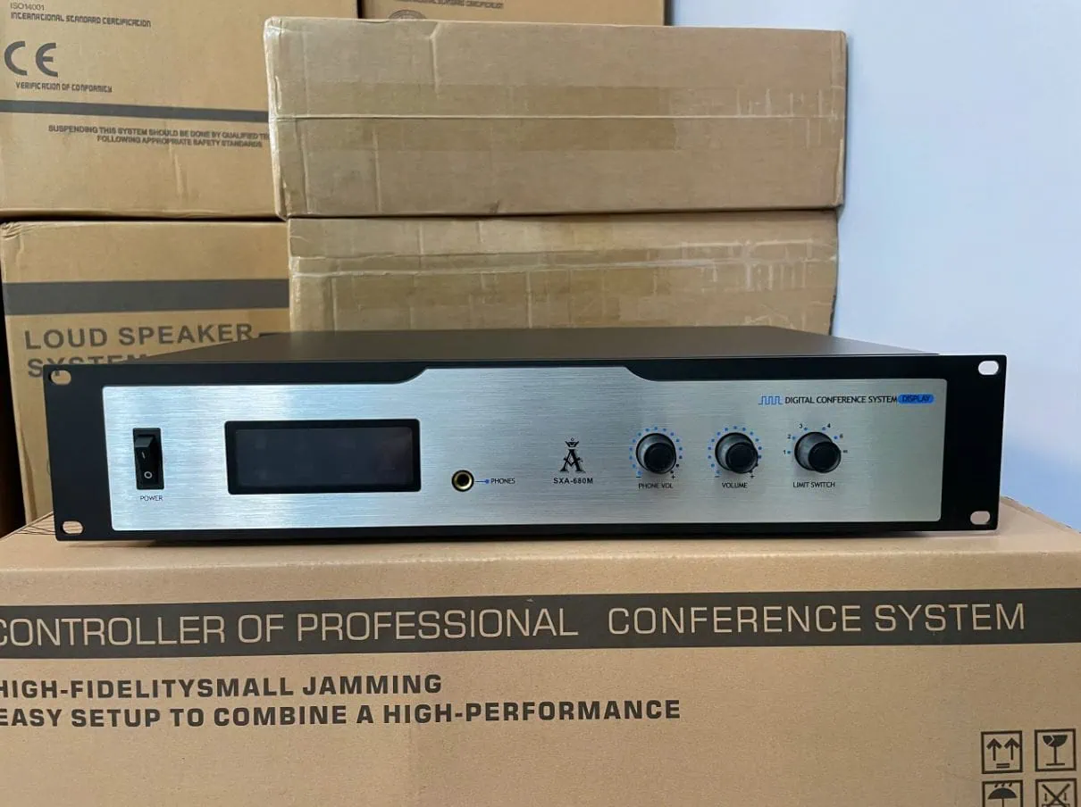 Bộ điều khiển trung tâm hội thảo AVA SXA-680M hàng nhập khẩu chính hãng chuyên dụng cho hệ thống micro AVA SXA 680 chủ tịch và đại biểu cung cấp nguồn nuôi 24v DC ổn định cho hệ thống lên tới 250 micro.